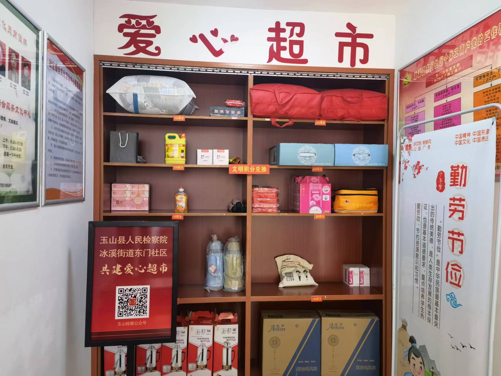 在开展“双联双促”工作过程中,玉山县检察院通过走访调研,了解到东门社区关于共建工作的创新做法,和社区群众的实际需求,认为打造“爱心超市”在助力文明创建、鼓励志愿服务方面具有重要意义。一方面,县检察院向东门社区捐赠2万元,助力“爱心超市”落地落实;另一方面,立足检察职能,积极向社区群众开展法治宣传,推广“玉山微检察”小程序,深入推进基层治理,获得群众一致好评。