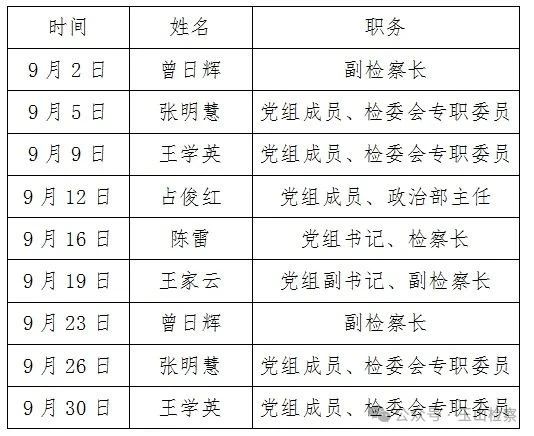 为深入贯彻习近平法治思想,全面生动展示新时代检察机关践行司法为民的政治自觉、思想自觉、行动自觉,倾听群众心声,解决群众诉求,扎实做好检察长接访工作,提升我院控告申诉工作质效,推动案结事了人和,玉山县人民检察院公布9月份“检察长接访”安排: